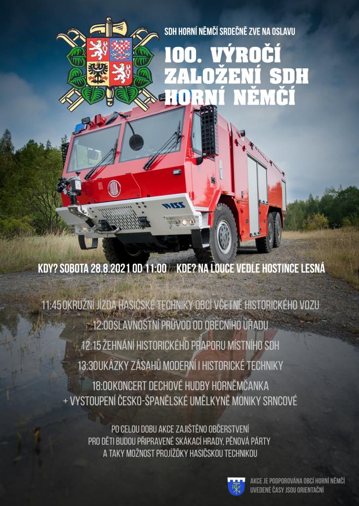 Příští týden naši dobrovolní hasiči slaví krásných 100 let od založení sboru 🚒 Tímto srdečně zvou na jejich oslavu, která je doplněna o velmi atraktivní program.