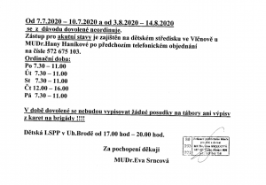 MUDr. Srncová informuje o nedostupnosti v období prázdnin. Rozpis naleznete v příloze