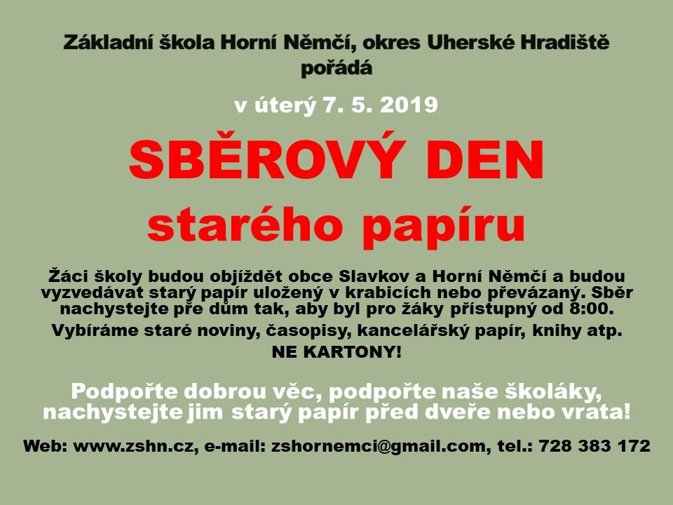 Podpořte dobrou věc, podpořte naše školáky. Sběr starého papíru se uskuteční v úterý 7.5.. Více informací v přiloženém letáku