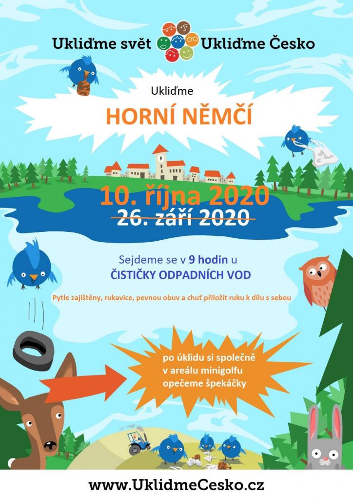 Tuto sobotu 10. října, bude v okolí obce probíhat akce Ukliďme Česko. Sraz bude v 9:00 hodin u čističky odpadních vod. Rukavice, pevnou obuv a chuť přiložit ruku k dílu s sebou.